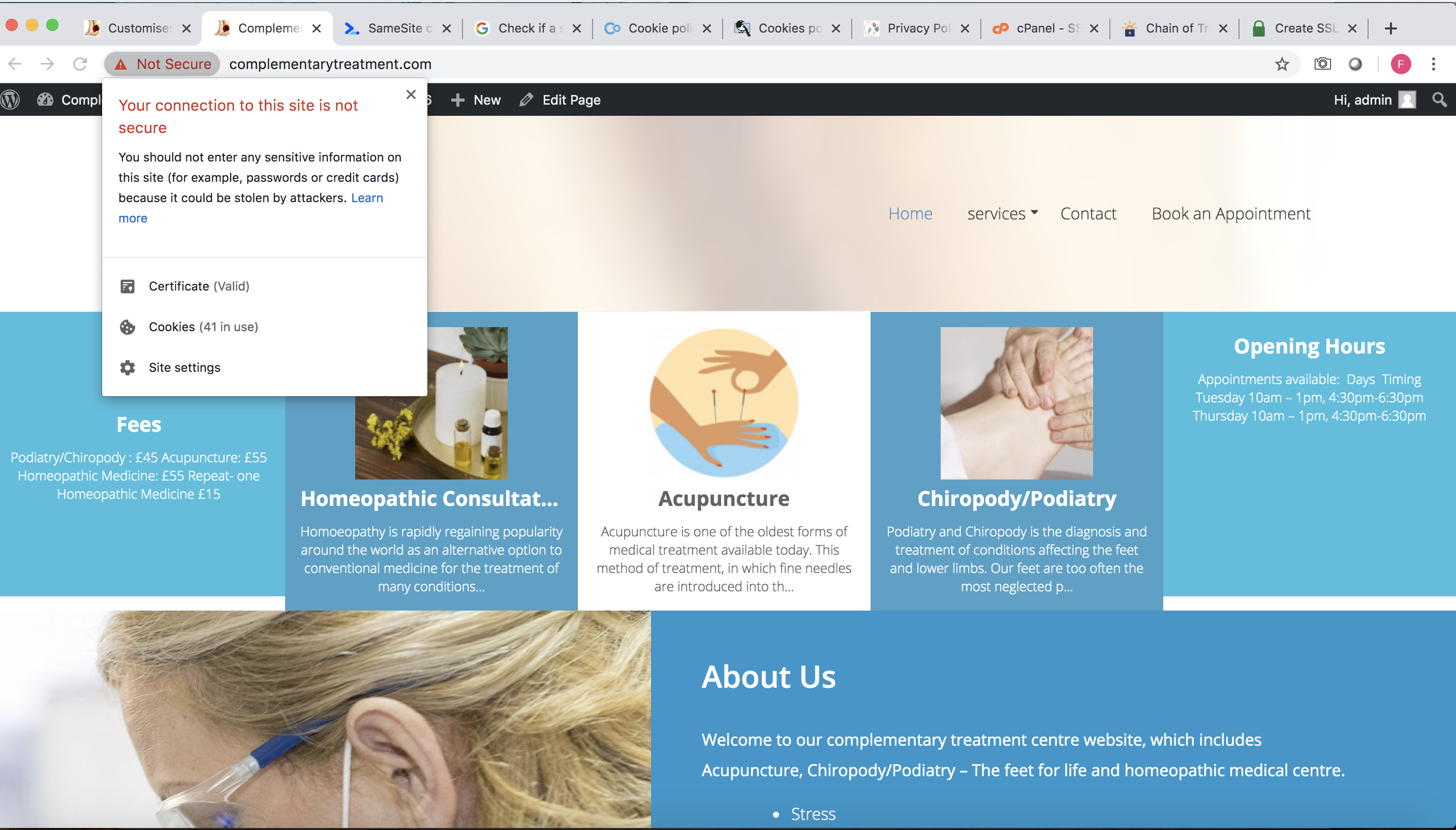 I checked the website on windows without admin login , and it came as secured. Is it some problem with admin or with mac?